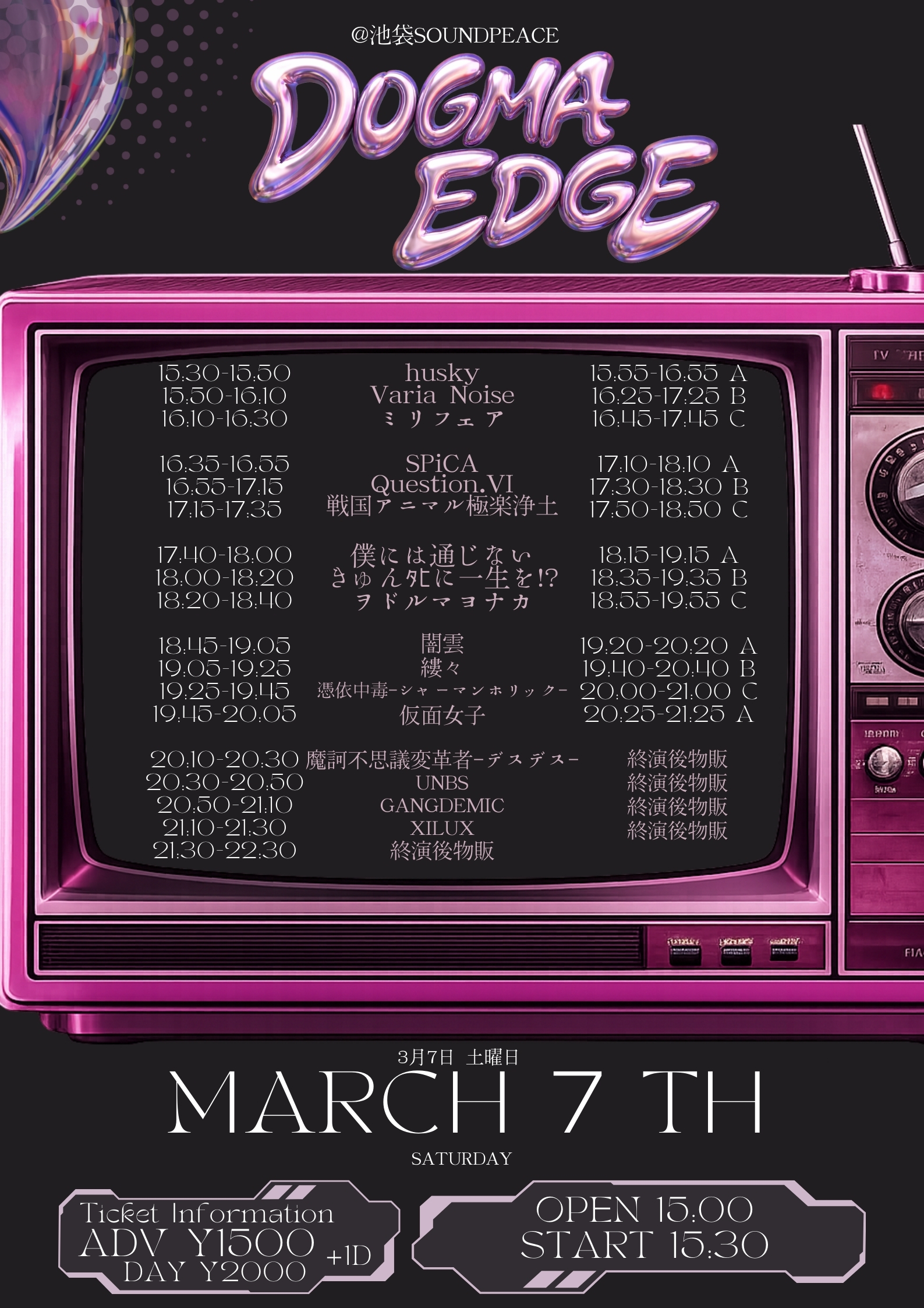 時間:OPEN15:00 / START 15:30