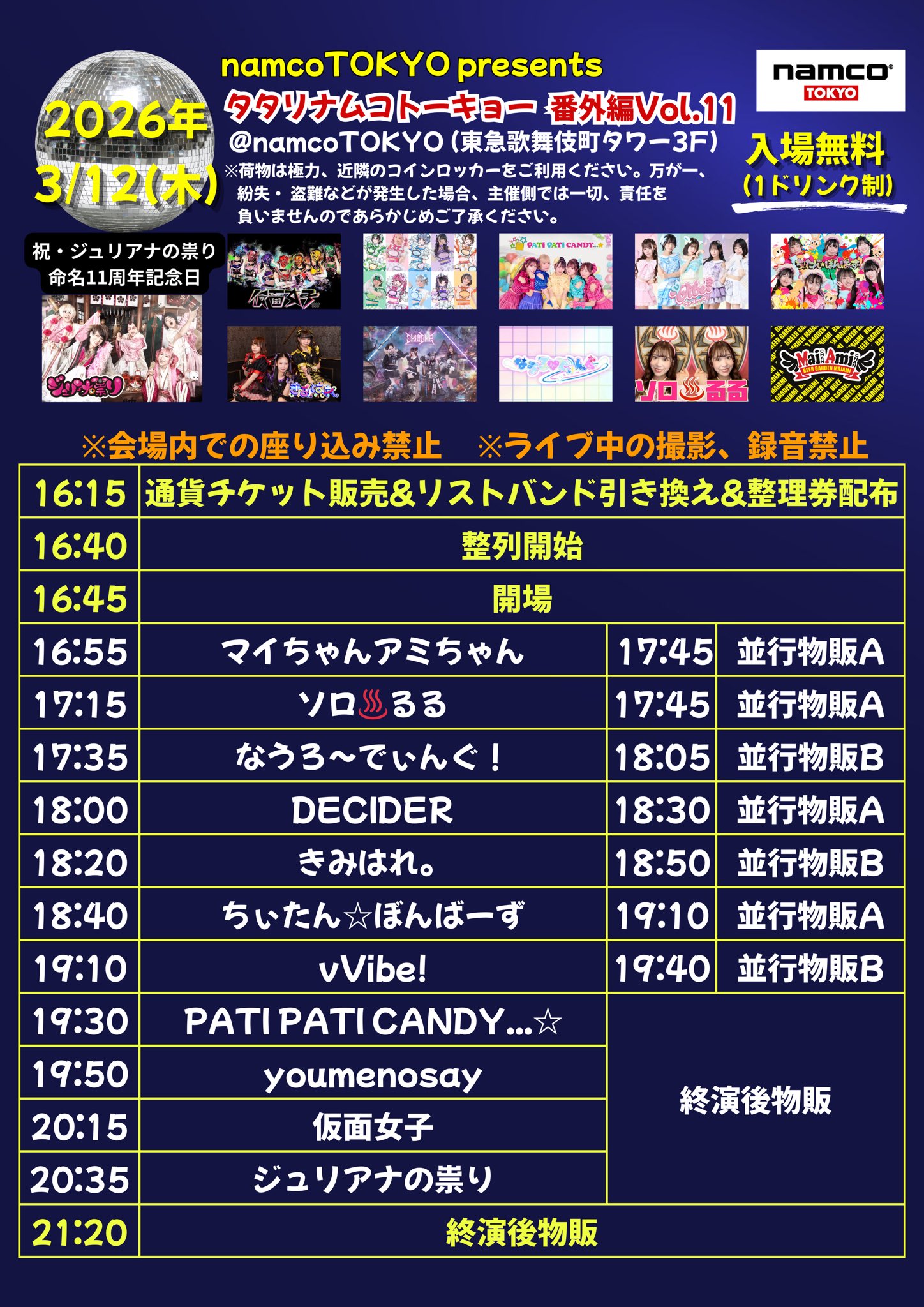 緊急開催!namco TOKYO presents タタリナムコトーキョーVol.11【仮面女子】
