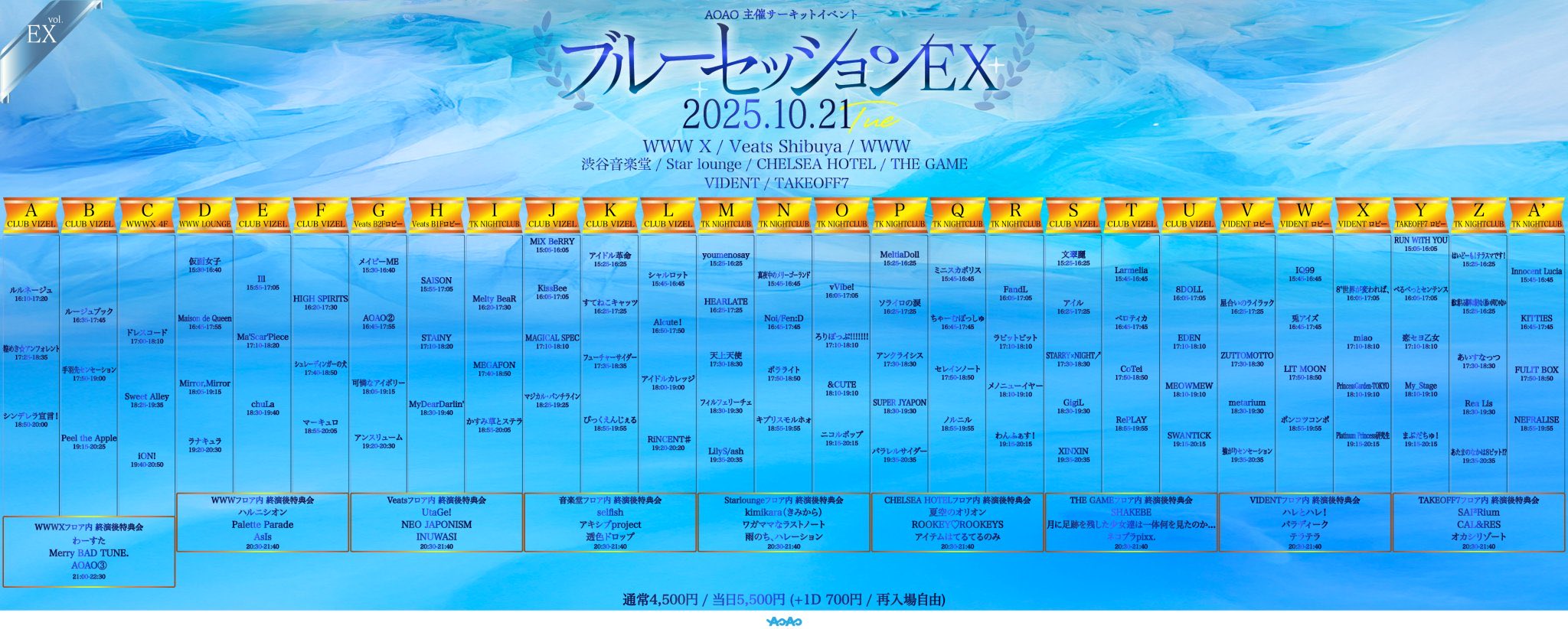 あたまのなかは8ビット⁉ / EDEN / 仮面女子 / KITTIES / キプリスモルホォ / XINXIN / SUPER JYAPON / STARRY×NIGHT↗ / ちゃーむぽっしゅ / 夏空のオリオン / NEFRALISE / びっくえんじぇる / PrincessGarden-TOKYO / FULIT BOX / My_Stage / MEOWMEW / メノニューイヤー / ルージュブック / ROOKEY♡ROOKEYS / LilyS/ash